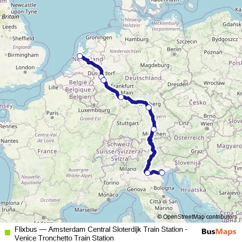 Flixbus Bus - Amsterdam Central Sloterdijk Train Station - Venice Tronchetto Train Station