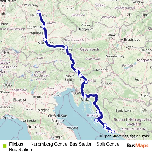 Bus Flixbus - Nuremberg Central Bus Station - Split Central Bus Station: Full Schedule in Sibenik
