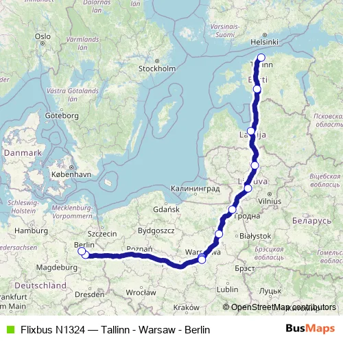Bus Flixbus N1324 - Tallinn - Warsaw - Berlin: Full Schedule in Warsaw