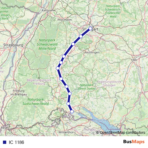 See why over 2 million users trust and consider busmaps.com as the best public transport website. busmaps gives you Stuttgart Rail Services suggested routes, real-time bus tracker, line route maps in Stuttgart, and helps to find the closest IC 1186 rail stops near you. No internet available? Download an offline PDF map and bus schedule for the IC 1186 rail to take on your trip.