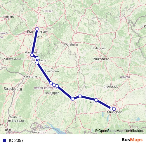 See why over 2 million users trust and consider busmaps.com as the best public transport website. busmaps gives you Munich Rail Services suggested routes, real-time bus tracker, line route maps in Munich, and helps to find the closest IC 2097 rail stops near you. No internet available? Download an offline PDF map and bus schedule for the IC 2097 rail to take on your trip.