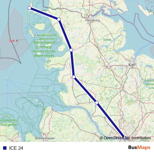 Westerland(Sylt). ICE 24 is operational during täglich.