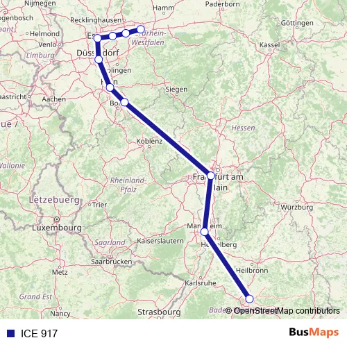 See why over 2 million users trust and consider busmaps.com as the best public transport website. busmaps gives you Stuttgart Rail Services suggested routes, real-time bus tracker, line route maps in Stuttgart, and helps to find the closest ICE 917 rail stops near you. No internet available? Download an offline PDF map and bus schedule for the ICE 917 rail to take on your trip.
