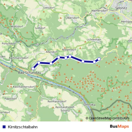 See why over 2 million users trust and consider busmaps.com as the best public transport website. busmaps gives you Bad Schandau Trams suggested routes, real-time bus tracker, line route maps in Bad Schandau, and helps to find the closest Kirnitzschtalbahn tram stops near you. No internet available? Download an offline PDF map and bus schedule for the Kirnitzschtalbahn tram to take on your trip.