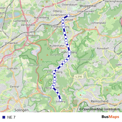 See why over 2 million users trust and consider busmaps.com as the best public transport website. busmaps gives you Wuppertal Buses suggested routes, real-time bus tracker, line route maps in Wuppertal, and helps to find the closest NE 7 bus stops near you. No internet available? Download an offline PDF map and bus schedule for the NE 7 bus to take on your trip.