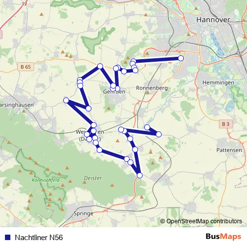 See why over 2 million users trust and consider busmaps.com as the best public transport website. busmaps gives you Hannover Buses suggested routes, real-time bus tracker, line route maps in Hannover, and helps to find the closest Nachtliner N56 bus stops near you. No internet available? Download an offline PDF map and bus schedule for the Nachtliner N56 bus to take on your trip.