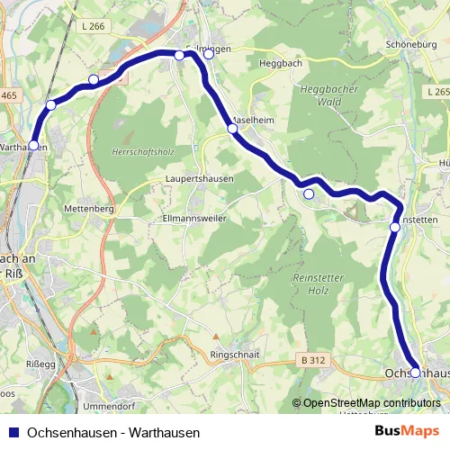 Additional information: Ochsenhausen - Warthausen has 9 stops and the total trip duration for this route is approximately 70 minutes.