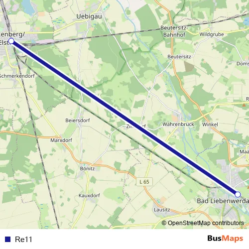 The first stop of the Re11 bus route is Bad Liebenwerda and the last stop is