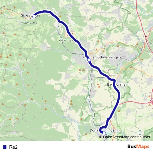 The first stop of the Re2 bus route is Offenburg Bahnhof Ost and the last stop is Haslach Bhf/Schleifmattstraße. Re2 is operational during täglich.