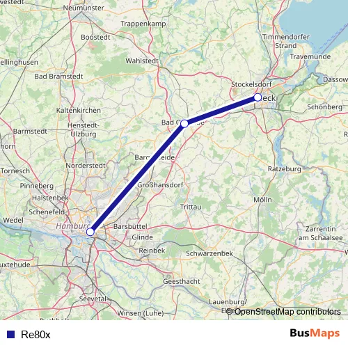 See why over 2 million users trust and consider busmaps.com as the best public transport website. busmaps gives you Hamburg Buses suggested routes, real-time bus tracker, line route maps in Hamburg, and helps to find the closest Re80x bus stops near you. No internet available? Download an offline PDF map and bus schedule for the Re80x bus to take on your trip.