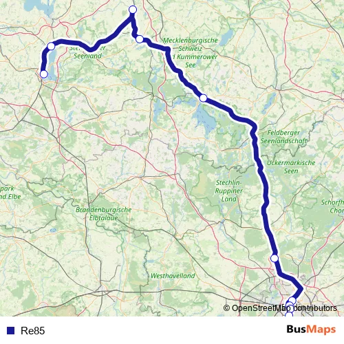 See why over 2 million users trust and consider busmaps.com as the best public transport website. busmaps gives you Berlin Rail Services suggested routes, real-time bus tracker, line route maps in Berlin, and helps to find the closest Re85 rail stops near you. No internet available? Download an offline PDF map and bus schedule for the Re85 rail to take on your trip.