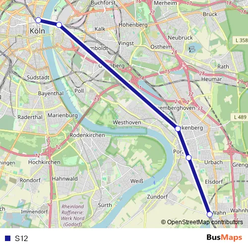 See why over 2 million users trust and consider busmaps.com as the best public transport website. busmaps gives you Koeln Buses suggested routes, real-time bus tracker, line route maps in Koeln, and helps to find the closest S12 bus stops near you. No internet available? Download an offline PDF map and bus schedule for the S12 bus to take on your trip.
