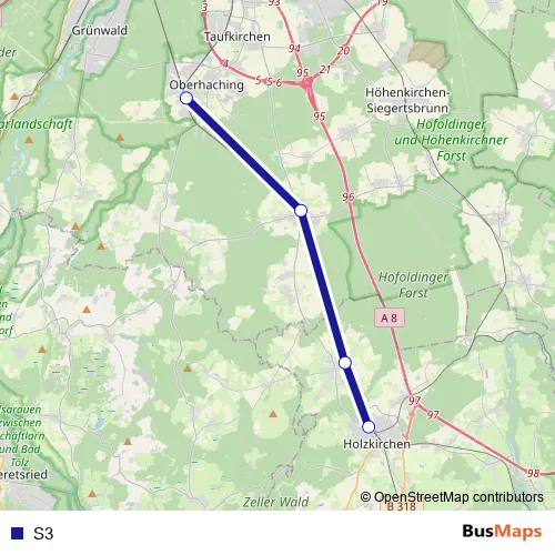 See why over 2 million users trust and consider busmaps.com as the best public transport website. busmaps gives you Sauerlach Buses suggested routes, real-time bus tracker, line route maps in Sauerlach, and helps to find the closest S3 bus stops near you. No internet available? Download an offline PDF map and bus schedule for the S3 bus to take on your trip.