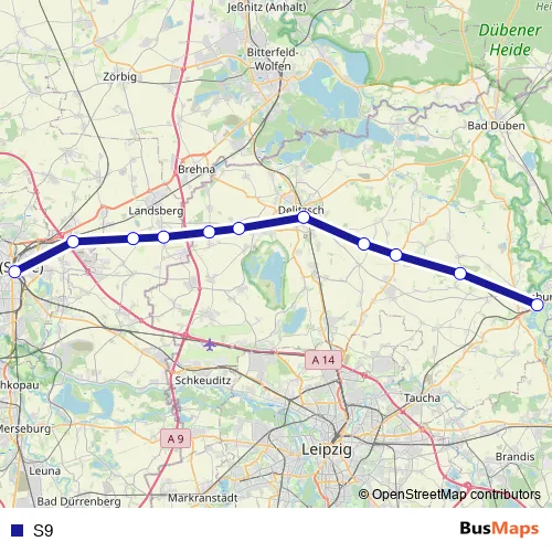 See why over 2 million users trust and consider busmaps.com as the best public transport website. busmaps gives you Delitzsch Rail Services suggested routes, real-time bus tracker, line route maps in Delitzsch, and helps to find the closest S9 rail stops near you. No internet available? Download an offline PDF map and bus schedule for the S9 rail to take on your trip.