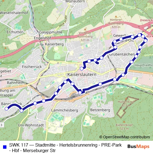 Stadtwerke Kaiserslautern Verkehrs-Ag SWK 117 bus Route Map