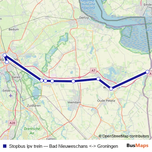Bus Stopbus ipv trein - Bad Nieuweschans <-> Groningen: Full Schedule in Groningen