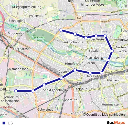 See why over 2 million users trust and consider busmaps.com as the best public transport website. busmaps gives you Nuernberg Metro Lines suggested routes, real-time bus tracker, line route maps in Nuernberg, and helps to find the closest U3 metro stops near you. No internet available? Download an offline PDF map and bus schedule for the U3 metro to take on your trip.