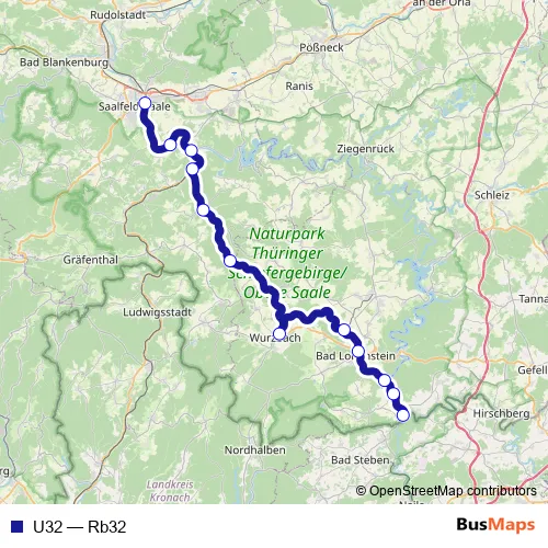 Kulmbacher Straße - Rosenthaler Straße - Lichtentanner Bahnhof - Am Bahnhof - Unterlemnitz Bahnhofstraße - Poststraße - Am Stausee - Tivoli - Absangerstraße