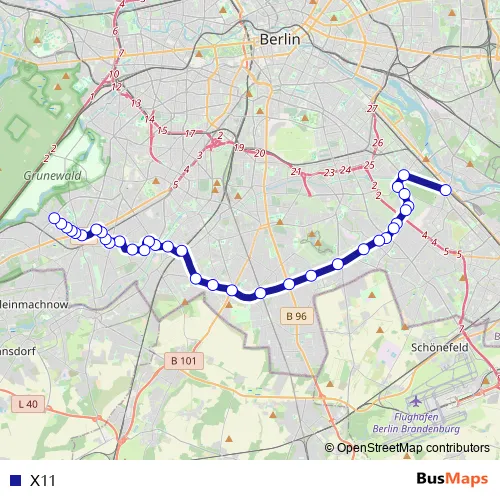 See why over 2 million users trust and consider busmaps.com as the best public transport website. busmaps gives you Berlin Buses suggested routes, real-time bus tracker, line route maps in Berlin, and helps to find the closest X11 bus stops near you. No internet available? Download an offline PDF map and bus schedule for the X11 bus to take on your trip.