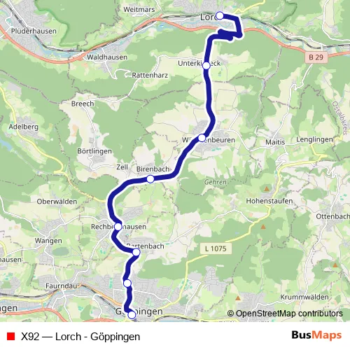 Lorch. X92 (Lorch - Göppingen) is operational during täglich.