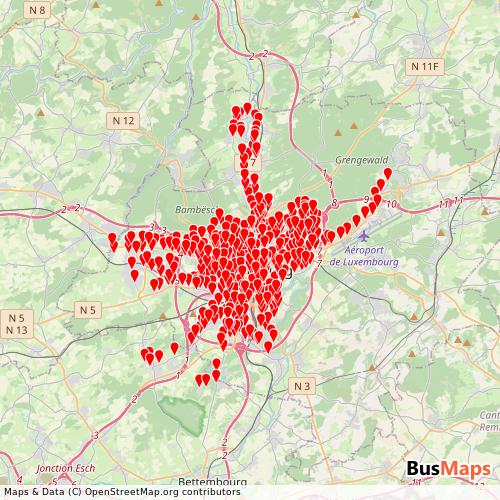 Ville de Luxembourg - Service Autobus operates in the following cities: Luxembourg.