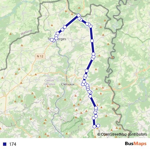 See why over 2 million users trust and consider busmaps.com as the best public transport website. busmaps gives you Clervaux Buses suggested routes, real-time bus tracker, line route maps in Clervaux, and helps to find the closest 174 bus stops near you. No internet available? Download an offline PDF map and bus schedule for the 174 bus to take on your trip.