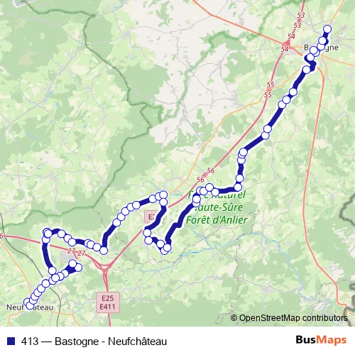 Hinfahrt: Neufchateau Parking St-Roch - Quai 2 ➞ Bastogne Pépinière - Quai 5