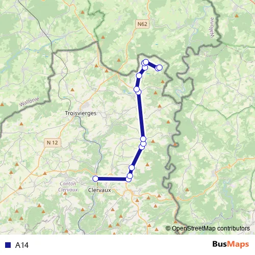 See why over 2 million users trust and consider busmaps.com as the best public transport website. busmaps gives you Weiswampach Buses suggested routes, real-time bus tracker, line route maps in Weiswampach, and helps to find the closest A14 bus stops near you. No internet available? Download an offline PDF map and bus schedule for the A14 bus to take on your trip.