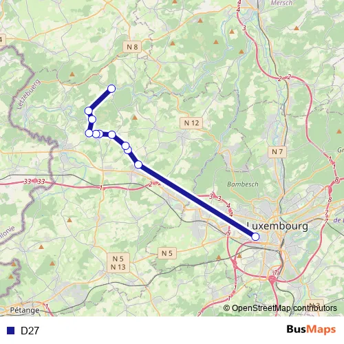 See why over 2 million users trust and consider busmaps.com as the best public transport website. busmaps gives you Koerich Buses suggested routes, real-time bus tracker, line route maps in Koerich, and helps to find the closest D27 bus stops near you. No internet available? Download an offline PDF map and bus schedule for the D27 bus to take on your trip.
