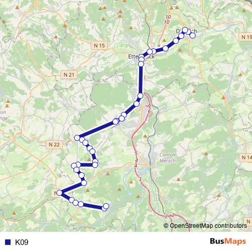 See why over 2 million users trust and consider busmaps.com as the best public transport website. busmaps gives you Diekirch Buses suggested routes, real-time bus tracker, line route maps in Diekirch, and helps to find the closest K09 bus stops near you. No internet available? Download an offline PDF map and bus schedule for the K09 bus to take on your trip.