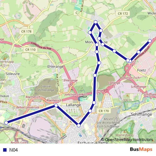 See why over 2 million users trust and consider busmaps.com as the best public transport website. busmaps gives you Mondercange Buses suggested routes, real-time bus tracker, line route maps in Mondercange, and helps to find the closest N04 bus stops near you. No internet available? Download an offline PDF map and bus schedule for the N04 bus to take on your trip.