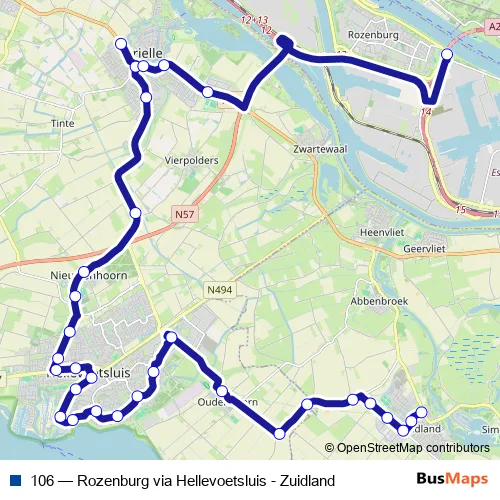 Click here to view the nearest 106 - Rozenburg via Hellevoetsluis - Zuidland bus stop.