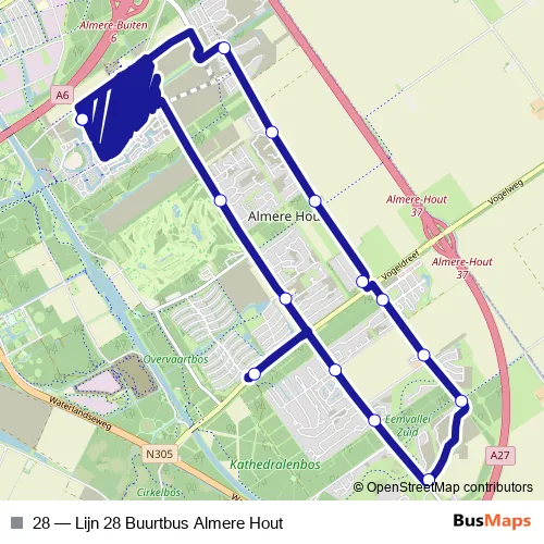 Bus 28 - Lijn 28 Buurtbus Almere Hout in Lelystad: Stops & Timetable