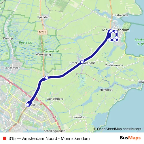 Bus 315 - Amsterdam Noord - Monnickendam in Amsterdam: Stops & Timetable