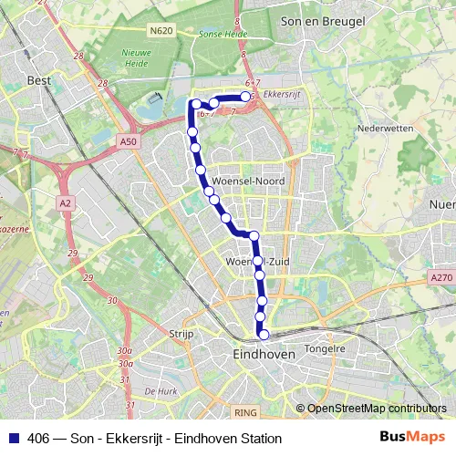 See why over 2 million users trust and consider busmaps.com as the best public transport website. busmaps gives you Son en Breugel Buses suggested routes, real-time bus tracker, line route maps in Son en Breugel, and helps to find the closest 406 bus stops near you. No internet available? Download an offline PDF map and bus schedule for the 406 bus to take on your trip.