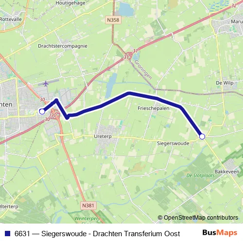 Bus 6631 - Siegerswoude - Drachten Transferium Oost: Full Schedule in Siegerswoude