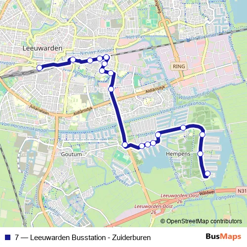 See why over 2 million users trust and consider busmaps.com as the best public transport website. busmaps gives you Leeuwarden Buses suggested routes, real-time bus tracker, line route maps in Leeuwarden, and helps to find the closest 7 bus stops near you. No internet available? Download an offline PDF map and bus schedule for the 7 bus to take on your trip.