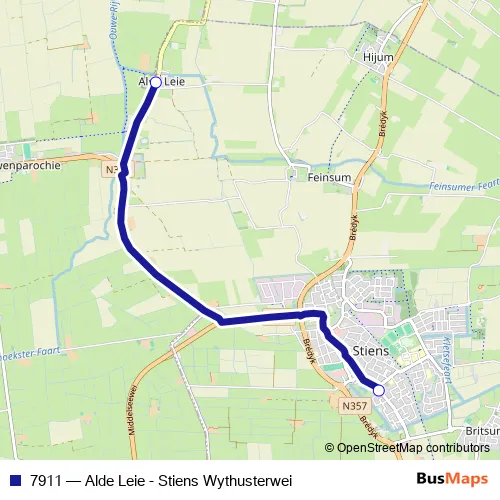Click here to view the nearest 7911 - Alde Leie - Stiens Wythusterwei bus stop.