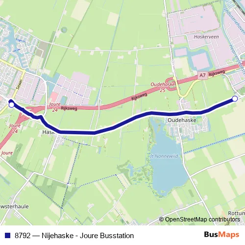 Bus 8792 - Nijehaske - Joure Busstation in Joure: Stops & Timetable