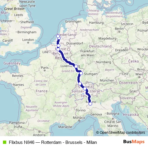 Flixbus N846 Bus - Rotterdam - Brussels - Milan