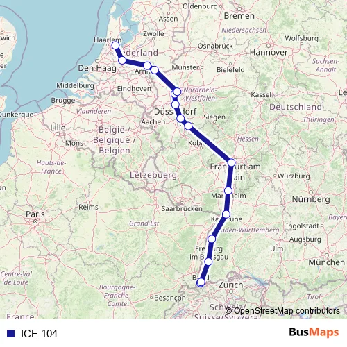 Centralbahnstrasse - Rammersweierstraße - Helmut-Kohl-Straße - Am Flughafen - Europaplatz - Breslauer Platz - Düsseldorf Hauptbahnhof Nordtunnel - Otto-Keller-Straße - Hansastraße - Eltenseweg - Stationshal