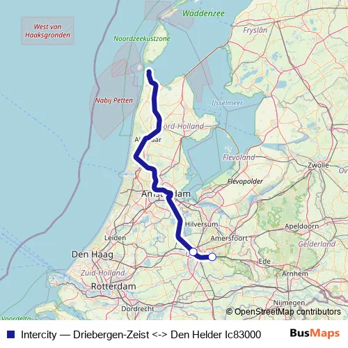 Click here to view the nearest Intercity - Driebergen-Zeist <-> Den Helder Ic83000 rail stop.