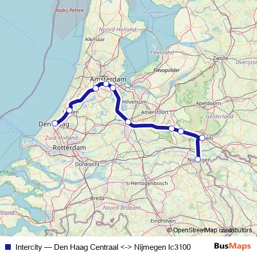 Nijmegen. Intercity (Den Haag Centraal <-> Nijmegen Ic3100) is operational during täglich.