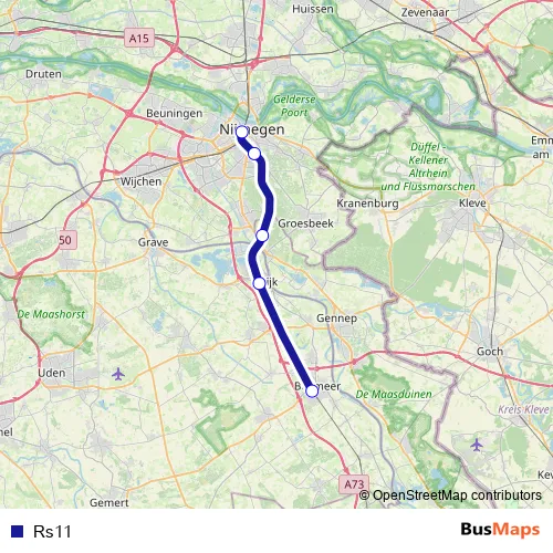 See why over 2 million users trust and consider busmaps.com as the best public transport website. busmaps gives you Nijmegen Buses suggested routes, real-time bus tracker, line route maps in Nijmegen, and helps to find the closest Rs11 bus stops near you. No internet available? Download an offline PDF map and bus schedule for the Rs11 bus to take on your trip.