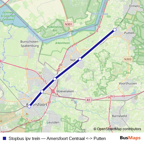 Click here to view the nearest Stopbus ipv trein - Amersfoort Centraal <-> Putten bus stop.