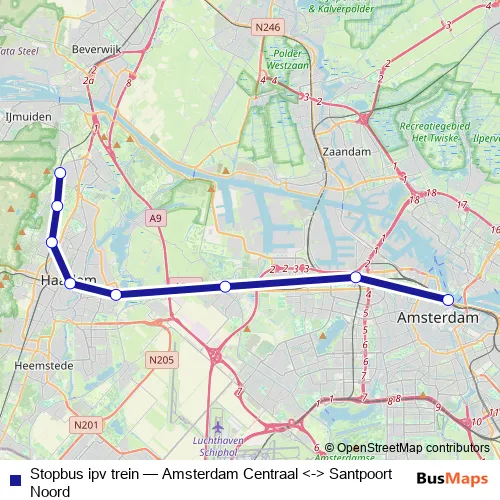 Click here to view the nearest Stopbus ipv trein - Amsterdam Centraal <-> Santpoort Noord bus stop.