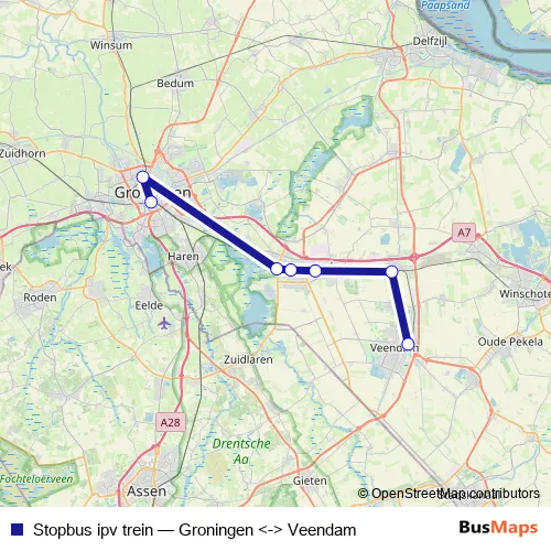 Click here to view the nearest Stopbus ipv trein - Groningen <-> Veendam bus stop.