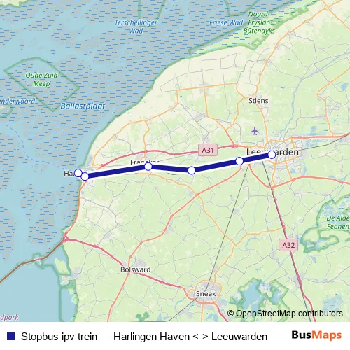 Stopbus ipv trein Bus - Harlingen Haven <-> Leeuwarden