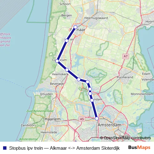 Click here to view the nearest Stopbus ipv trein - Alkmaar <-> Amsterdam Sloterdijk bus stop.