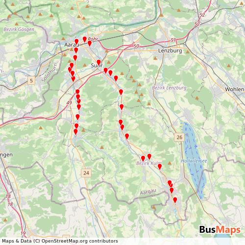 AVA-wsb (Aargau Verkehr Ag), based in Aarau, Aargau, Switzerland, provides local public transport service, including Rail. Our platform provides detailed and up-to-date information on routes, schedules, stops, and arrivals for all services operated by AVA-wsb (Aargau Verkehr Ag). Whether you're planning your daily commute or exploring the area, our tools help you find the nearest stop and the best route to your destination.